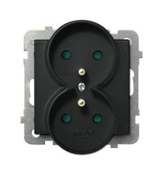 ( cantitate de produse: 413 )Priză dublă cu împământare cu obturatoare de circuit de curent negru metalic Ospel Sonata GP-2RRZP/m/33