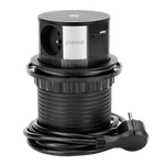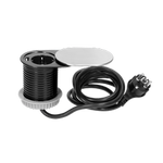 Priză de mobilă Ø6cm, încastrată cu capac glisant, încărcător USB și cablu de 1,9m, 1x2P+Z (Schuko), 1xUSB (tip A, 2,4A), 3x1,5mm2