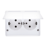 Priză dublă Schuko cu montaj la suprafață, rezistentă la umezeală IP44 cu protecție, versiune scandinavă 16A, 250V~, terminale cu șurub albă Kontakt Simon EGSZ2NZB/11