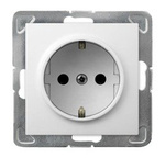 Priză unică cu împământare, cu obloane de căi de curent, albă Ospel Impresja GP-1YZP/m/00