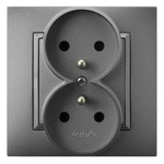Priză dublă cu obturatoare de circuit de curent antracit Ospel Impresja GP-2YRP/m/50