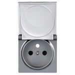 Capac pentru priză simplă cu împământare, cu clapetă IP44, argintiu, seria ViP ViPlast